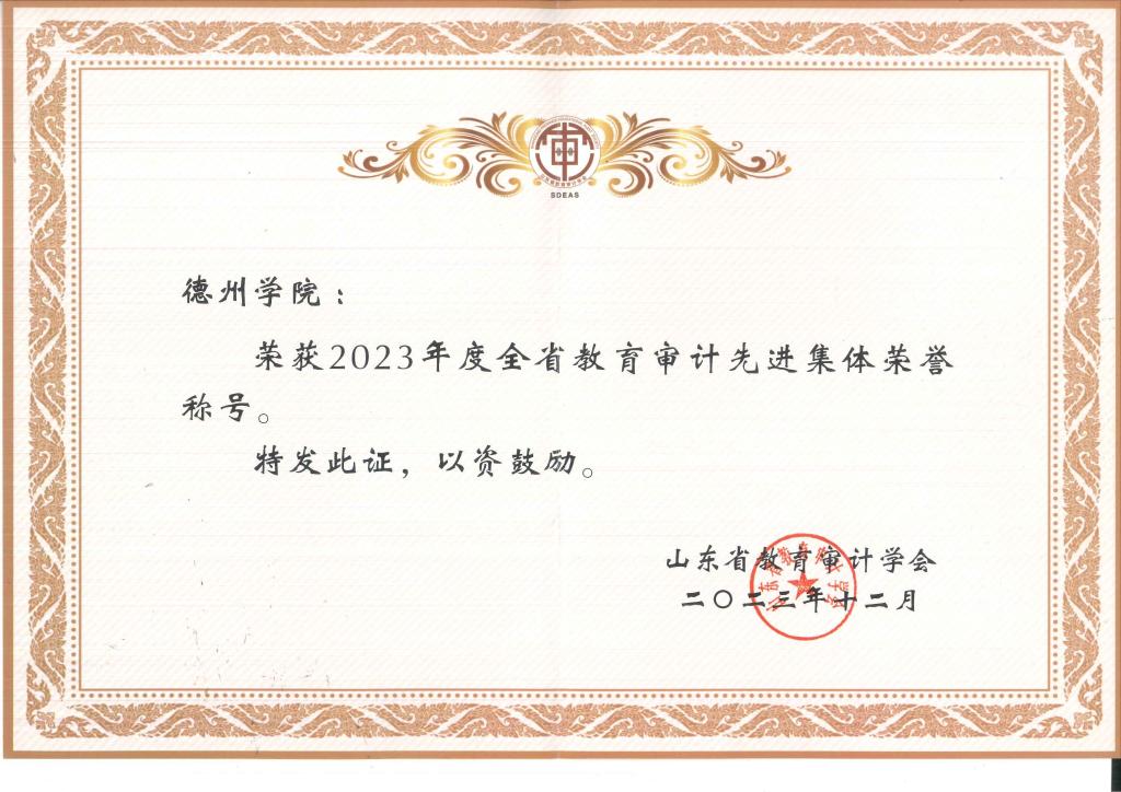德州学院审计处荣获“2023年度全省教育审计先进集体”荣誉称号