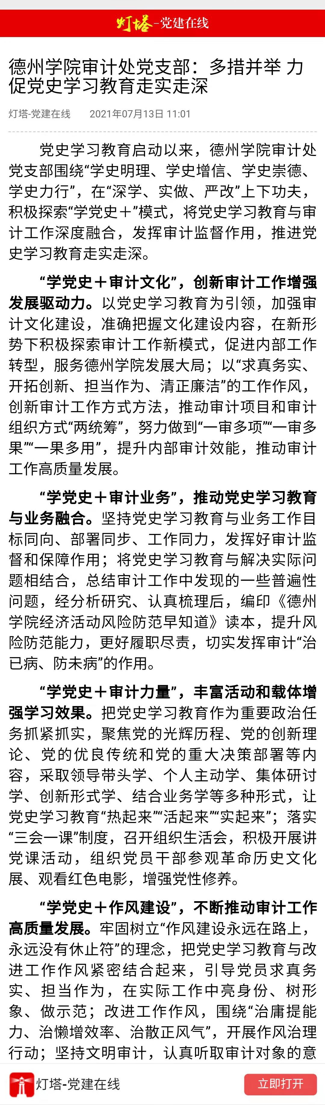 【灯塔党建在线】德州学院审计处党支部:多措并举 力促党史学习教育走实走深
