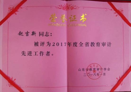 赵吉新同志被评为2017年度全省教育审计先进工作者